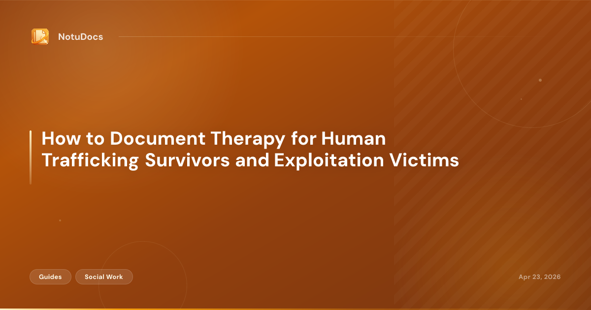Therapists and social workers who support human trafficking survivors face a documentation challenge unlike most clinical work. The notes you write will serve multiple audiences simultaneously: insurance auditors, law enforcement investigators, immigration attorneys, civil legal advocates, and multidisciplinary team coordinators. At the same time, those notes exist in a setting where a single poorly chosen word can compromise a survivor's safety, undermine a pending criminal case, or trigger a re-traumatization response when the client reviews their own records.