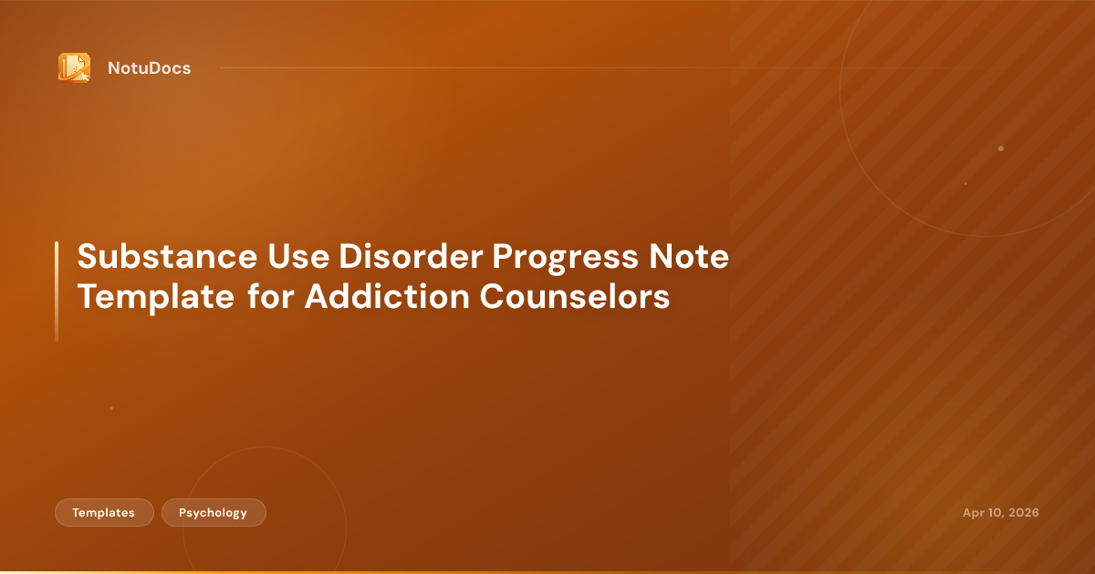 If you write SUD notes at high volume, tools like NotuDocs allow you to build a SUD-specific progress note template with all required fields, so your documentation structure stays consistent across every client and session type. The template-first approach means you control the format; the tool fills the structure from your session notes rather than generating clinical content you have not verified.