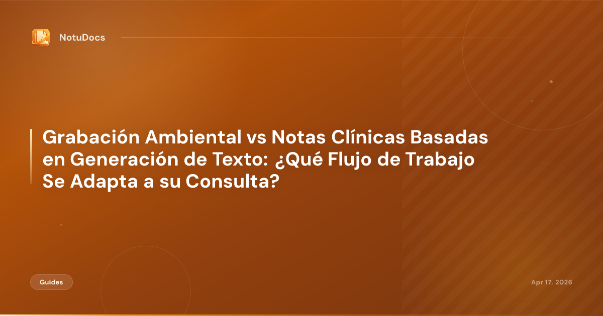 Grabación Ambiental vs Notas Clínicas Basadas en Generación de Texto: ¿Qué Flujo de Trabajo Se Adapta a su Consulta?