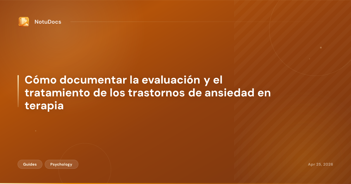 Para lectura relacionada, la guía sobre documentación de sesiones de TCC cubre el marco completo de TCC que sustenta la documentación del tratamiento de la ansiedad. La guía sobre exposición y prevención de respuesta para TOC aborda la documentación de la exposición en detalle para el subtipo de TOC.