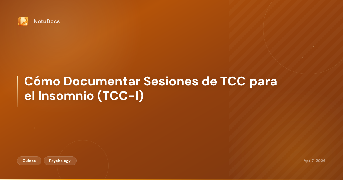 Esta guía cubre los datos esenciales que toda nota de TCC-I debe incluir, la estructura de documentación sesión a sesión a lo largo del protocolo típico de 4 a 8 sesiones, cómo integrar los datos del diario de sueño, cómo documentar los cambios en la terapia de restricción del sueño (TRS) y las instrucciones de control de estímulos (ICE), qué medidas de resultado validadas usar y cómo registrarlas, cómo documentar la coordinación de la reducción gradual de medicamentos hipnóticos, y cómo modificar la documentación cuando las comorbilidades complican el cuadro.