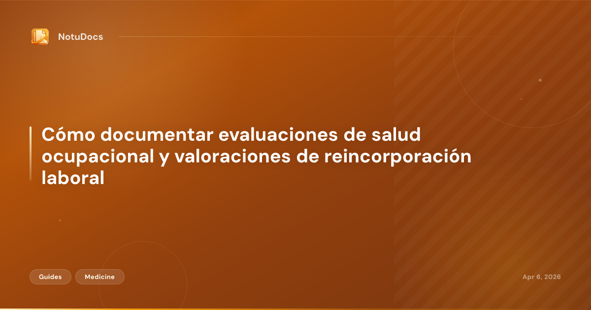 Cómo documentar evaluaciones de salud ocupacional y valoraciones de reincorporación laboral