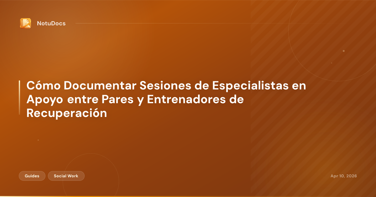 Si su programa usa una herramienta de documentación como NotuDocs, puede construir una plantilla de sesión de apoyo entre pares que solicite los campos correctos y lo mantenga dentro del alcance de su práctica de manera automática. Un enfoque basado en plantillas significa que usted completa lo que ocurrió en lugar de escribir desde una página en blanco cada vez.