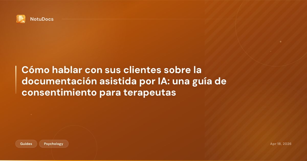 Una guía práctica para terapeutas que quieren adoptar herramientas de documentación con IA pero no saben cómo abordar la conversación de consentimiento con sus clientes. Incluye qué decir, cuándo plantearlo, cómo manejar las objeciones más comunes y ejemplos de lenguaje de divulgación.