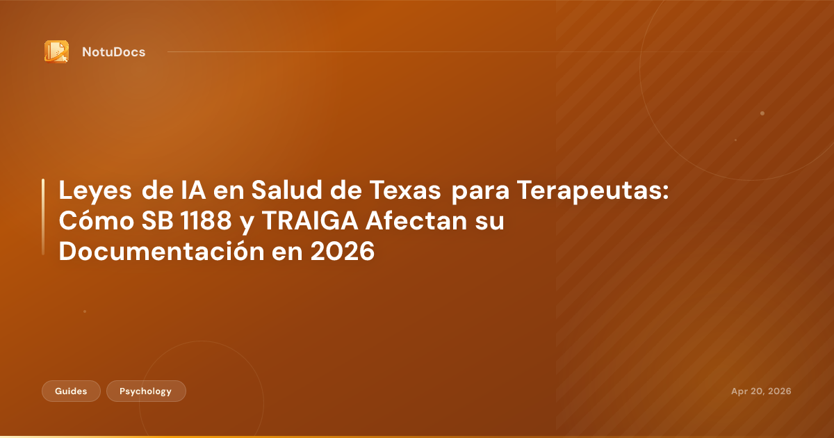 Leyes de IA en Salud de Texas para Terapeutas: Cómo SB 1188 y TRAIGA Afectan su Documentación en 2026