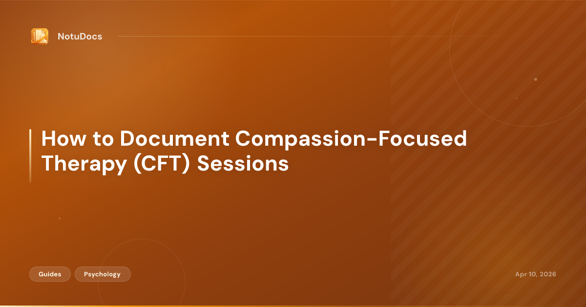 A practical guide for therapists on documenting Compassion-Focused Therapy sessions: covering the three emotion regulation systems, compassionate mind training, fears and blocks to compassion, SOAP and DAP note formats, and how to track CFT-specific progress goals.