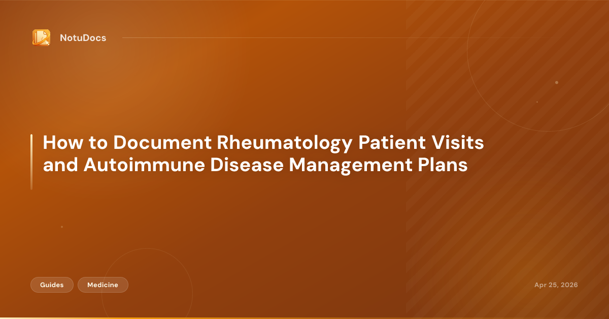 A rheumatology visit note does not look like a primary care note, and that distinction matters when you sit down to write one. The clinical picture in autoimmune disease changes slowly over months and years, with the trajectory best understood by comparing serial visits. A single note in isolation tells you relatively little. A well-structured series of notes tells you whether a patient's rheumatoid arthritis is in sustained remission, whether a biologic is working, and whether the treatment plan needs to change before the next joint destruction event.