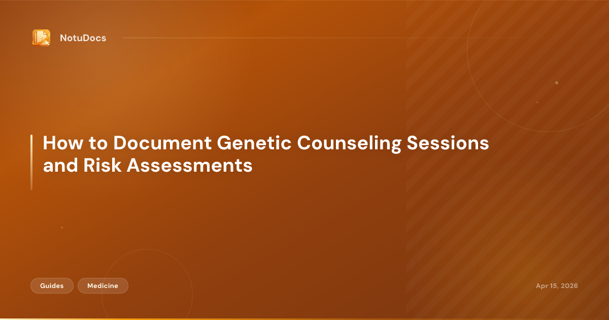 A structured visit note that includes all of the components above serves double duty: it is clinically defensible and it supports billing at the appropriate level. Some counselors use a template with dedicated fields for pedigree summary, risk model output, and counseling content to ensure nothing is omitted. Tools like NotuDocs let counselors pre-build that template structure so each field is ready to fill at the end of the session, without starting from a blank note each time.