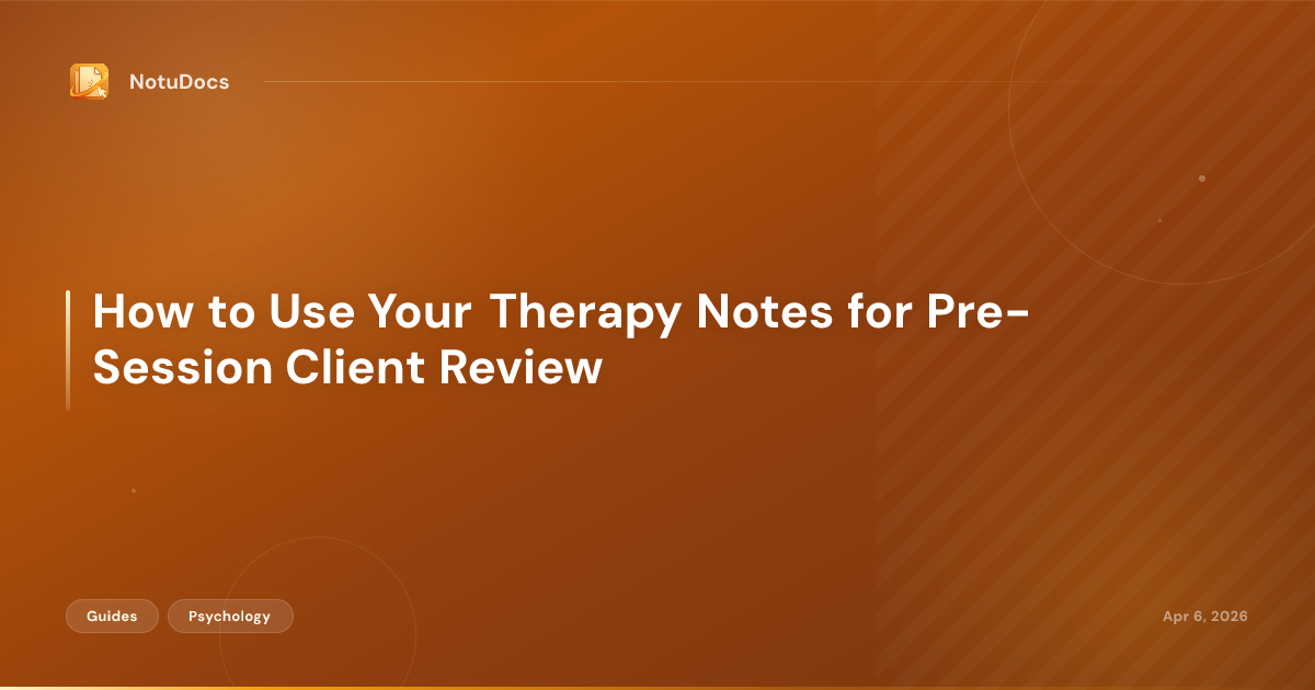 Tools like NotuDocs can help here: if you use a template-first generation workflow, you can include a "pre-session anchor" section as part of your note template so it populates automatically each time, written in your voice and formatted for quick review rather than for billing.